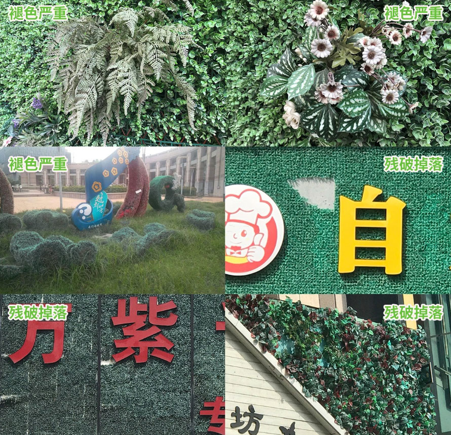 仿真植物制作的時(shí)候用的塑料PE和其他材料在日光,紫外線的作用,產(chǎn)生自動(dòng)氫化反應(yīng),導(dǎo)致聚合物的降解而劣化,使外觀及機(jī)械性能變壞。